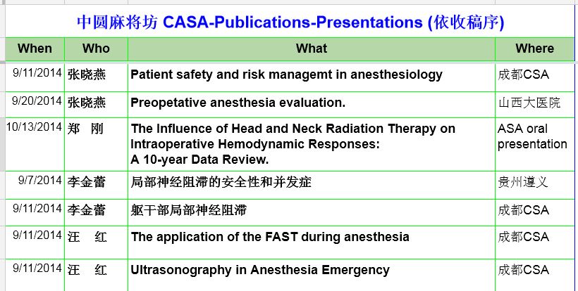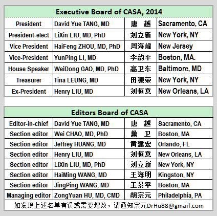 美国华人麻醉医学会(Chinese American Society of Anesthesiology CASA) Oct, 2014(09)